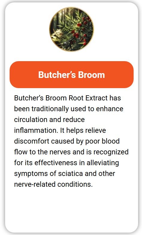 Then there’s Butchers Broom, a natural relaxant that’s been used for generations to relieve nerve tension, ease pain, and promote deep, restorative sleep. Modern research confirms its ability to calm the nervous system without sedating or impairing cognition — something critical for those who want relief without dependency or heavy side effects.
