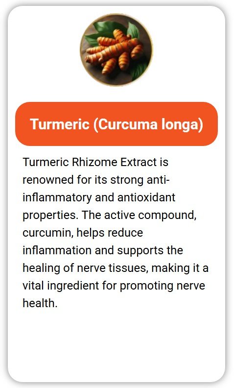 Powerful and Potent ingredients, each selected for their beneficial impact on nerve health and nerve function.